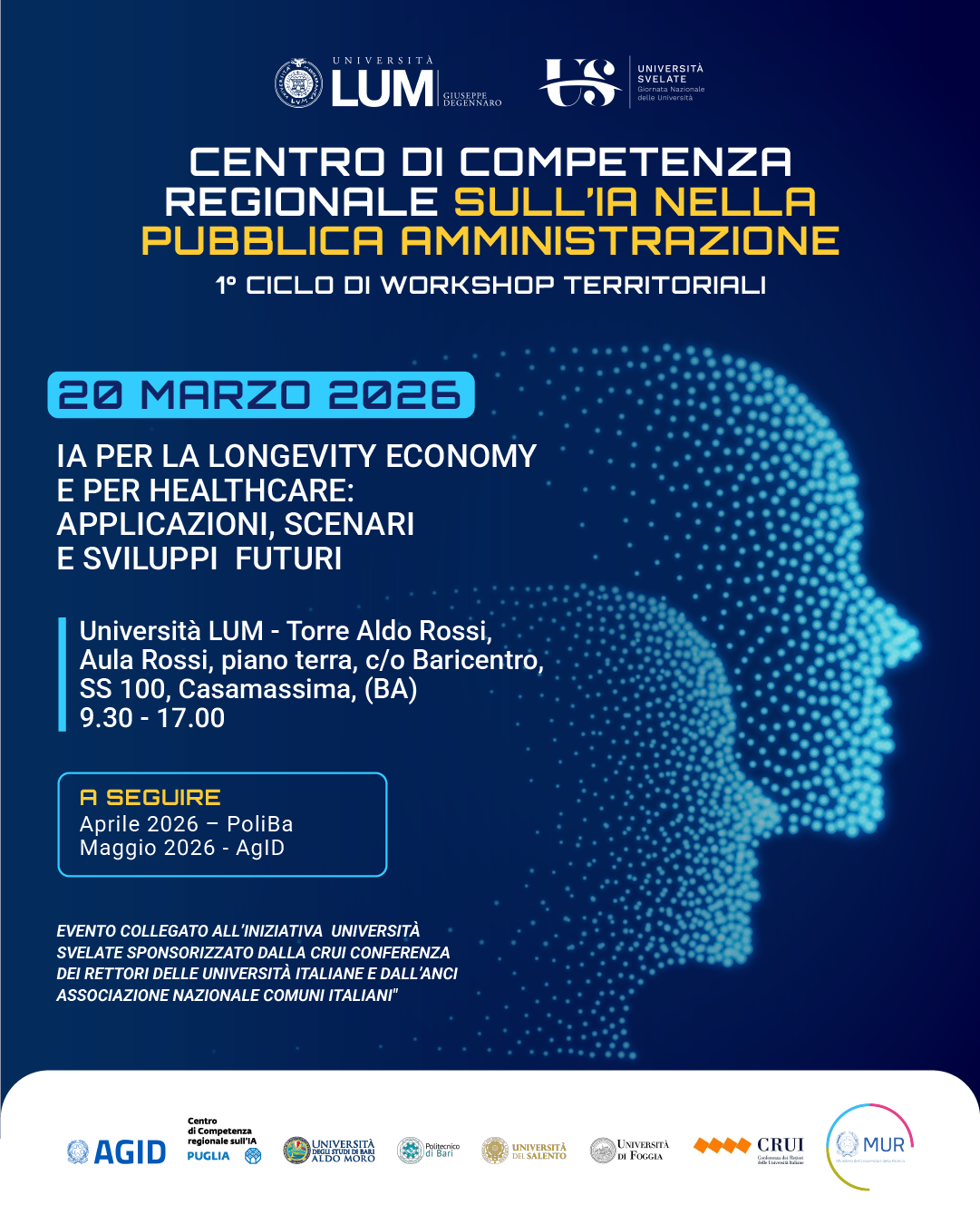 Centro di Competenza regionale sull’IA nella Pubblica Amministrazione: il 20 marzo il quinto workshop all’Università LUM