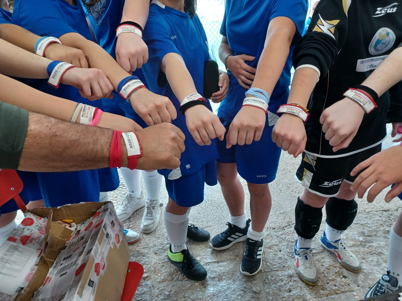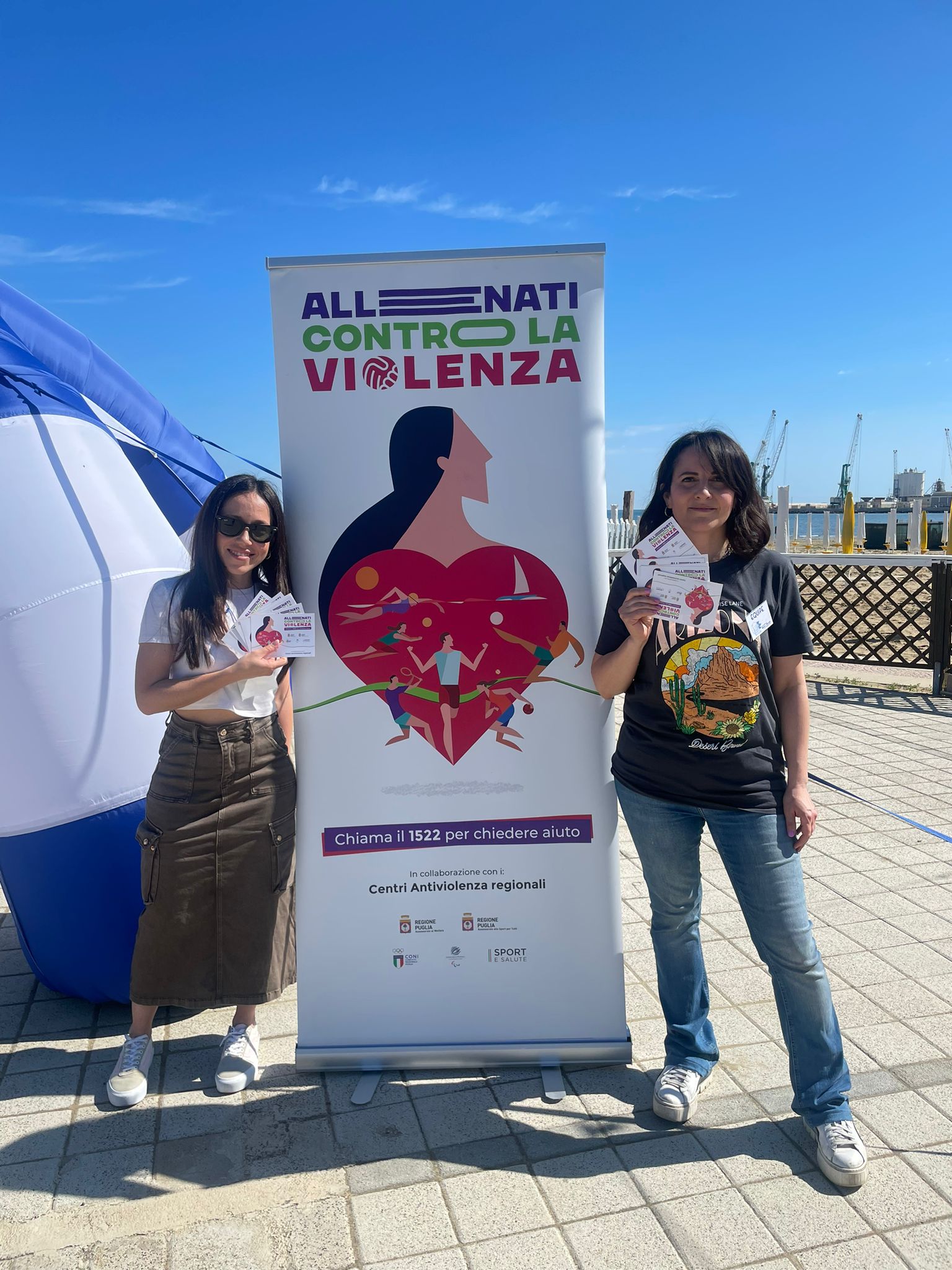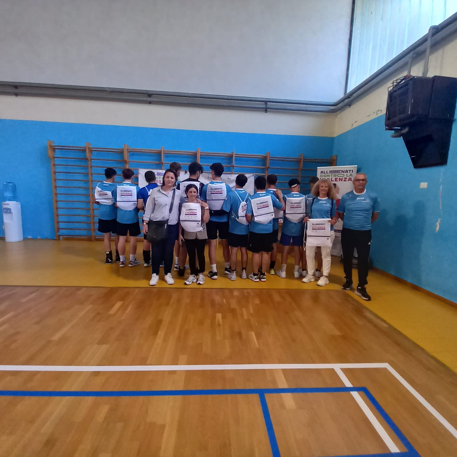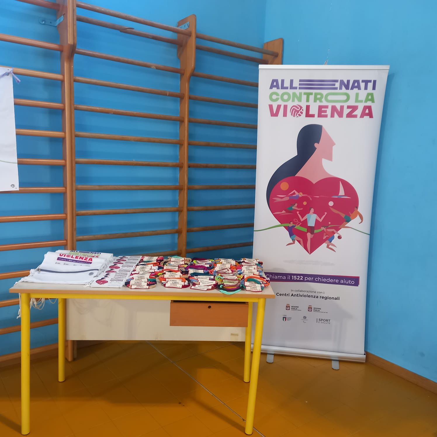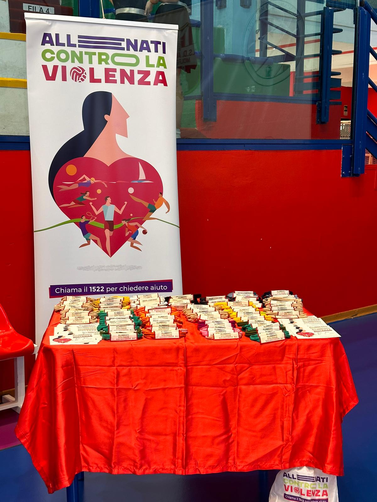 L’evento rientrava tra le iniziative previste dalla campagna di sensibilizzazione della Regione Puglia "Allenati contro la violenza"; agli studenti e alle studentesse giunti/e al palazzetto sono stati distribuiti i materiali informativi e i braccialetti con il numero verde 1522.